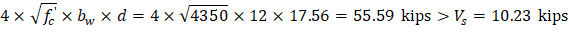 Check whether the required spacing based on the shear demand meets the spacing limits for shear reinforcement per ACI 318-14 (9.7.6.2.2).