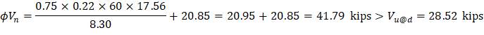 This value governs over the required stirrup spacing of 22.67 in. which was based on the demand.