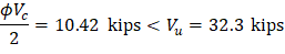 Since Vu > ϕVc/2, shear reinforcement is required.