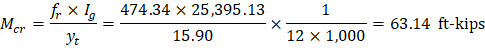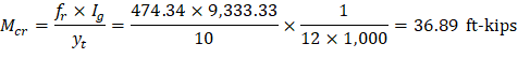 Since Mcr = 36.89 ft-kips < Ma = 127.55 ft-kips | |