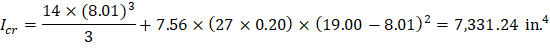 Ic,g | = | The gross moment of inertia (Ig) for the column strip (for T section) = 20,040.49 in.4 | |