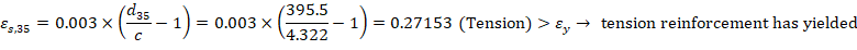 The maximum tensile strain calculated above is significantly higher than the yield strain and indicates the section is very lightly reinforced. Increasing the steel area will result in lower maximum strain and increase the moment capacity.