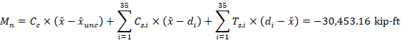 This corresponds to the case where the nominal axial load capacity, Pn, is equal to zero. The following show the general iterative procedure to calculate the moment capacity of the irregular wall section at this control point, all the calculated values are shown in the next Table.