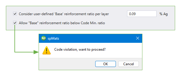 spMats allow users to check the minimum reinforcement ratios required by the selected code.