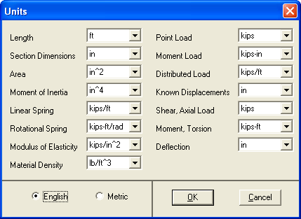 •Open the drop-down list boxes needed and select the appropriate units (see the following Figure 4-4 for the units used in this example).