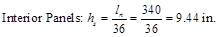 Where ln = length of clear span in the long direction = 30 x 12 – 20 = 340 in.