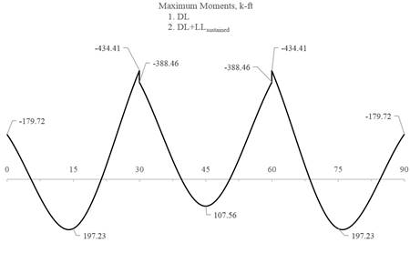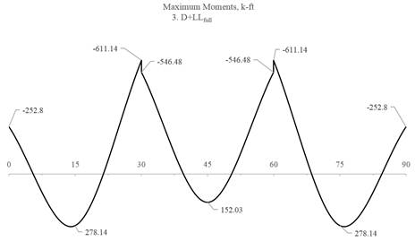 In all of the hand calculations illustrated above, the results are in close or exact agreement with the automated analysis and design results obtained from the spSlab model. Excerpts of spSlab graphical and text output are given below for illustration.