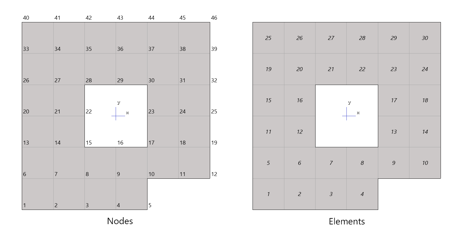 All nodes and members are numbered from left to right (in the positive X-direction) and from bottom to top (in the positive Y-direction).