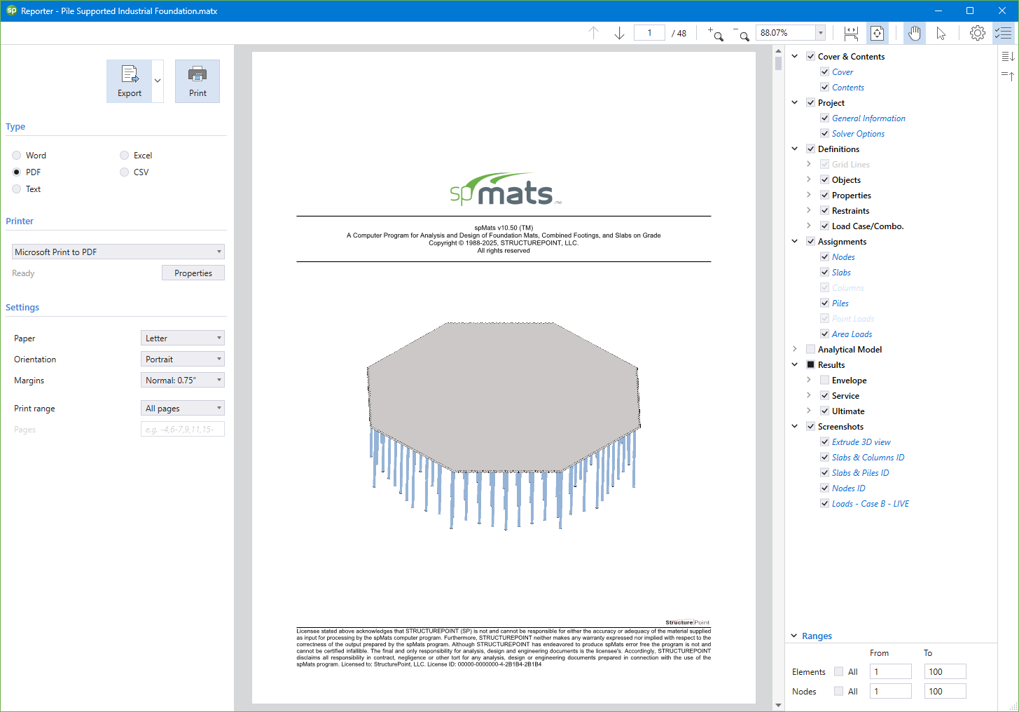 Additionally, spMats supports direct integration with spColumn by exporting pile and column data - including geometry, materials, and applied loads - into spColumn Text Input (CTI) files.