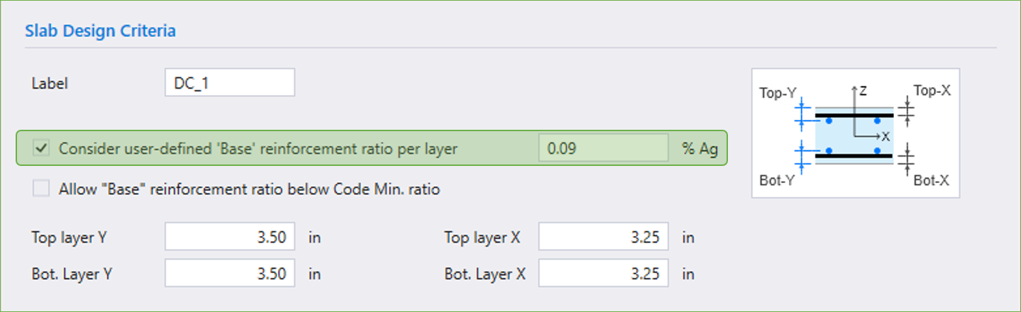 Users can also define a "Base" reinforcement ratio for each layer, to reflect practical detailing needs.